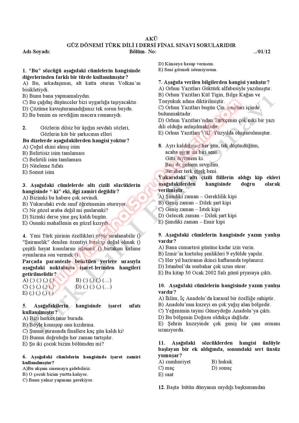 vize ve final sorulari paylasim portali