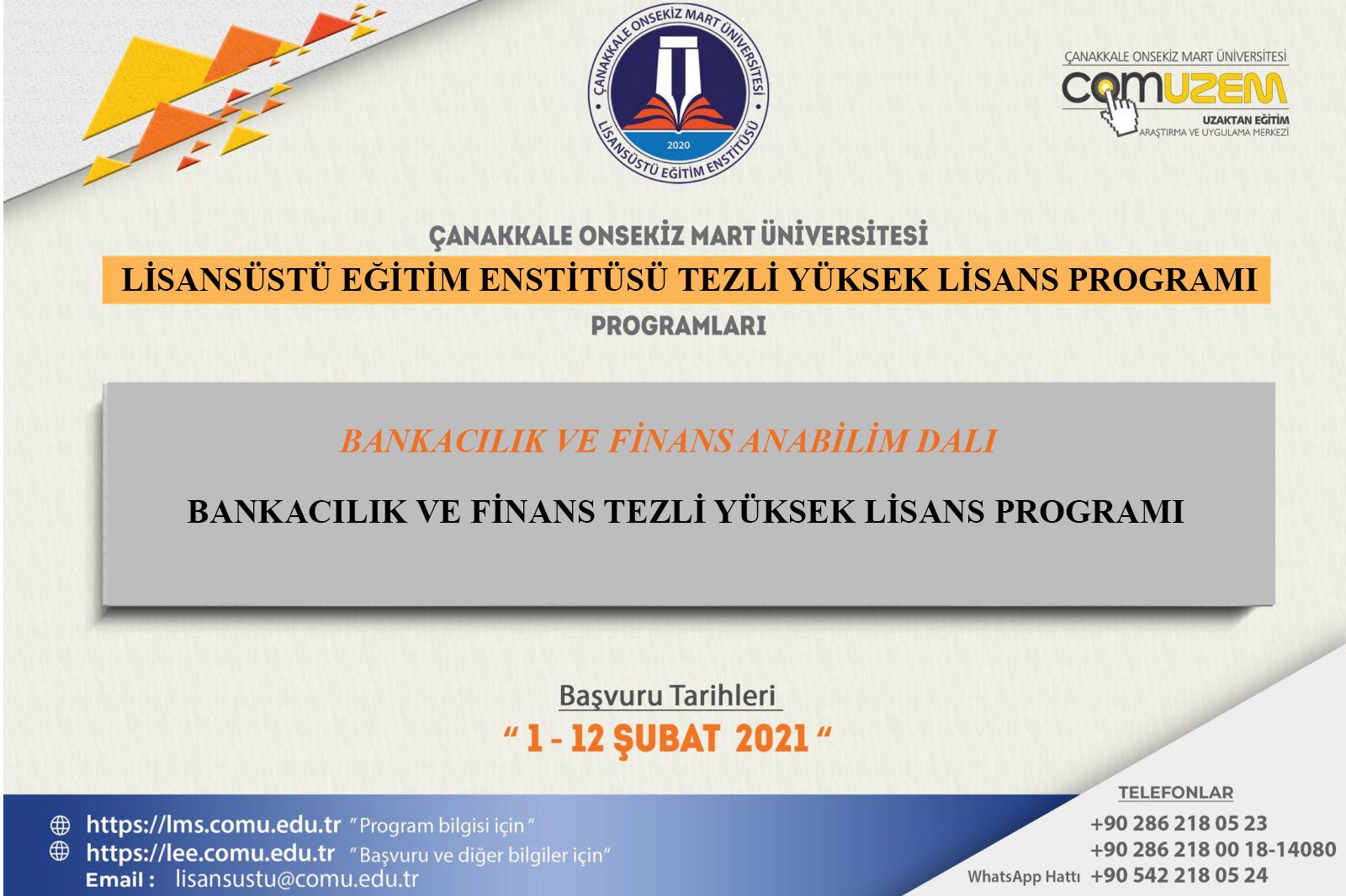 Sosyal bilimler enstitüsü bankacılık ve finans anabilim dalı ingilizce. Lisans programı mezunu olmak. Bu program uzaktan öğretim tekniğine dayalı olarak yükseköğretim kurumlarında uzaktan öğretime ilişkin usul ve esaslar çerçevesinde yürütülecektir.