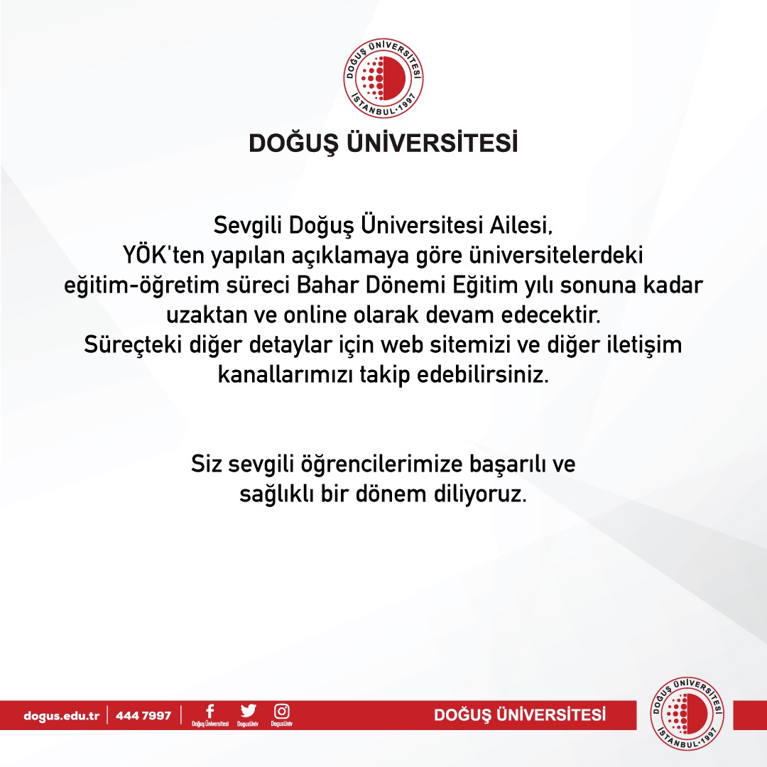 Doğuş üniversitesi rektörlüğü nden 20 04 2021 tarihli öğretim üyesi ve öğretim elemanı ilanı nis 16 ingilizce hazırlık sınıfı 19 04 2021 pop sınavı bilgileri.