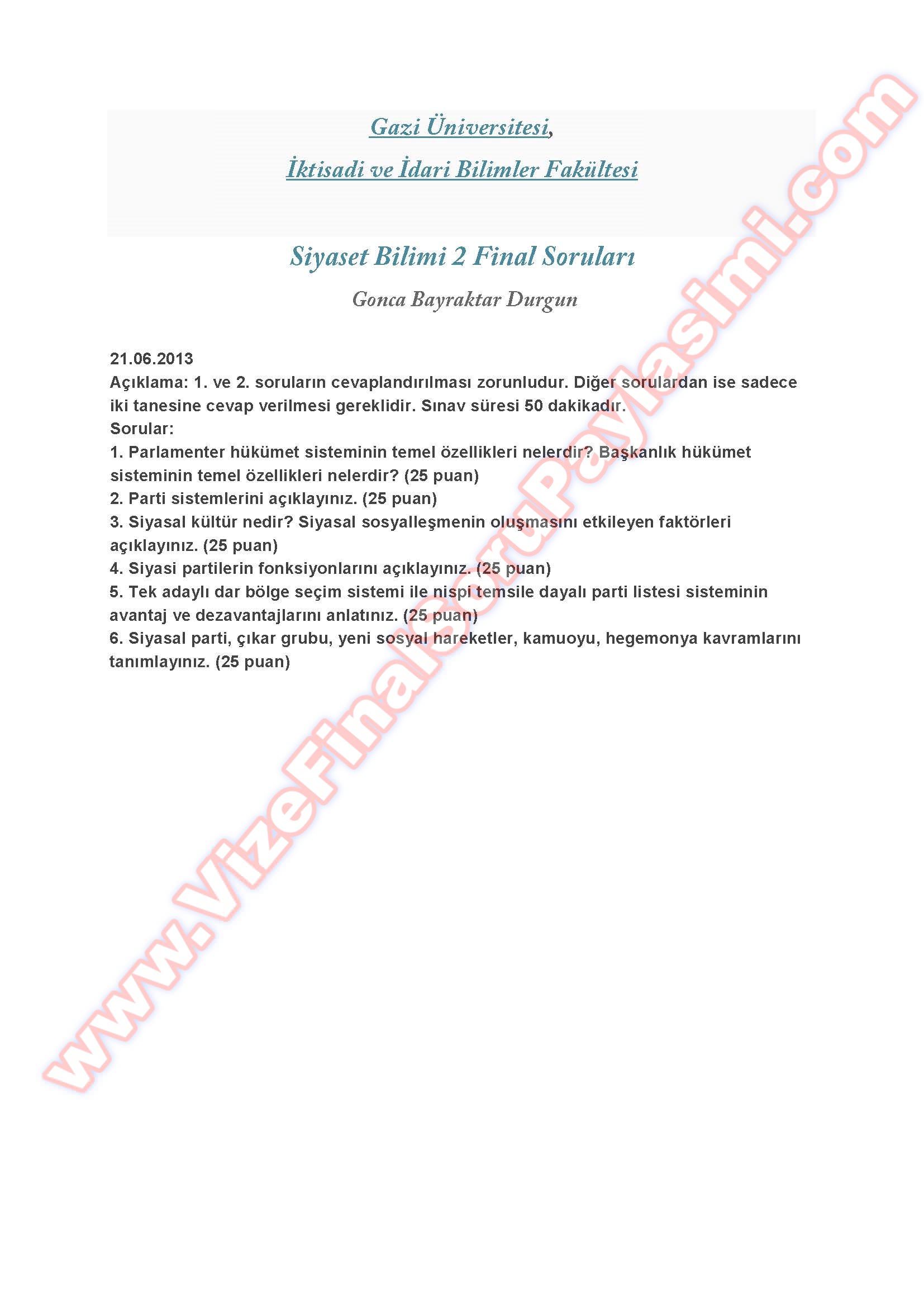 siyaset bilimi 2 final sorulari 2013 vize ve final sorulari paylasim portali cozumlu sorular icin tiklayin