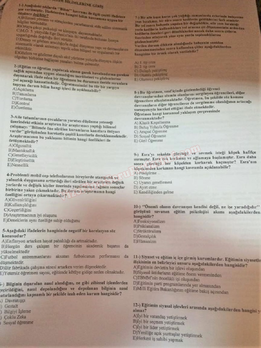 aof ingilizce ogretmenligi bolumu 1 sinif egitim bilimine giris 1518 dersinin 2011 yili final sinavinda cikmis sorular