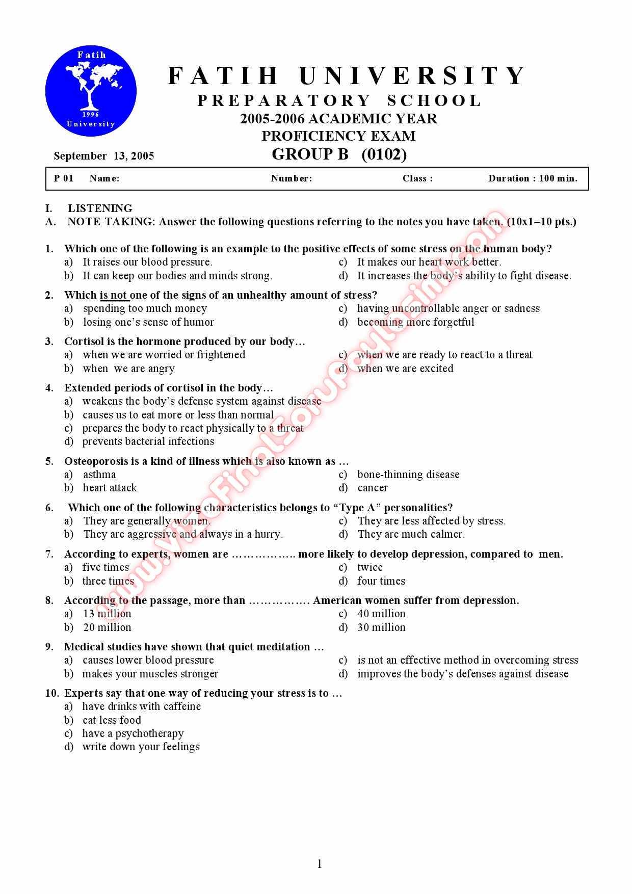 kocaeli universitesi yabanci diller muafiyet sinavi ornegi
