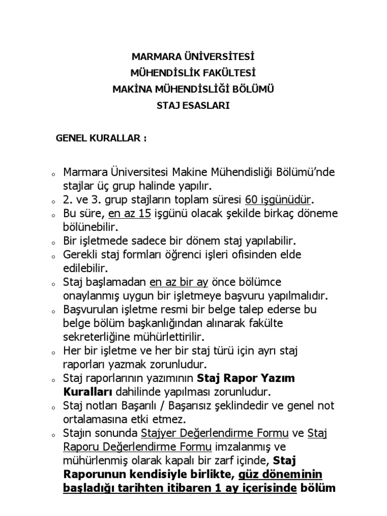 staj endustri muhendisligi muhendislik fakultesi marmara universitesi