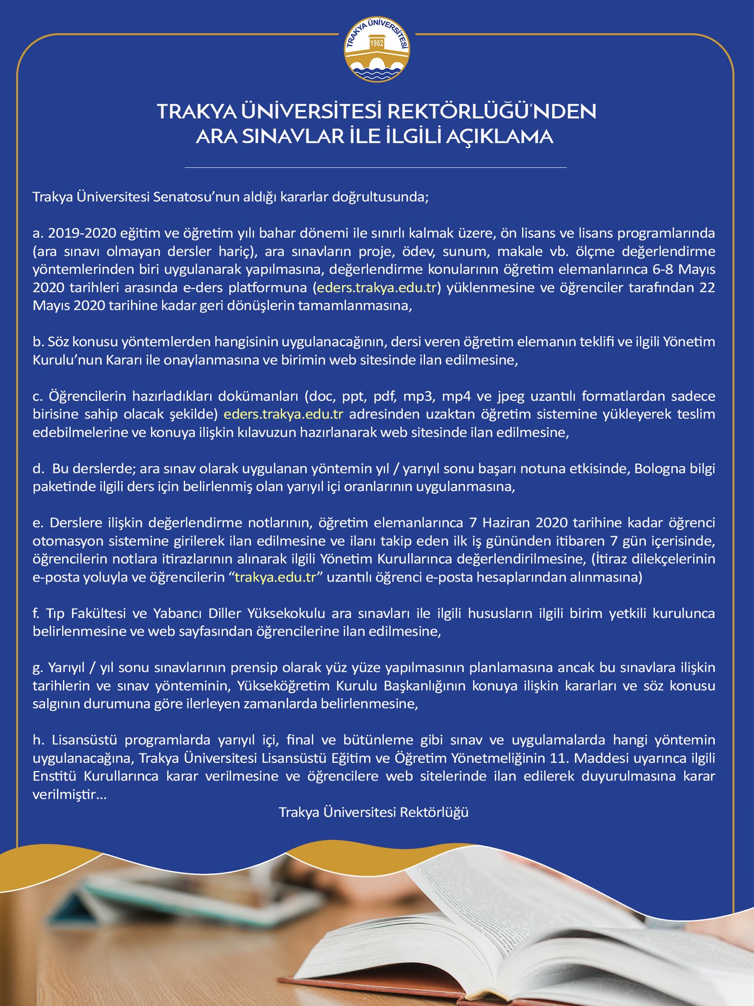 2020 2021 eğitim öğretim yili güz yariyili sonunda yapilacak tek ders sinavi. Trakya üniversitesi 2020 2021 eğitim öğretim yili güz dönemi eğitim modeli hakkinda. Trakya üniversitesi 2020 2021 akademik yılı yabancı dil ingilizce muafiyet sınavı hakıında 11 11 2020 2020 2021 eğitim öğretim zorunlu yabancı dil muafiyet sınavı hk. Tümünü görüntülemek için lütfen tıklayınız.